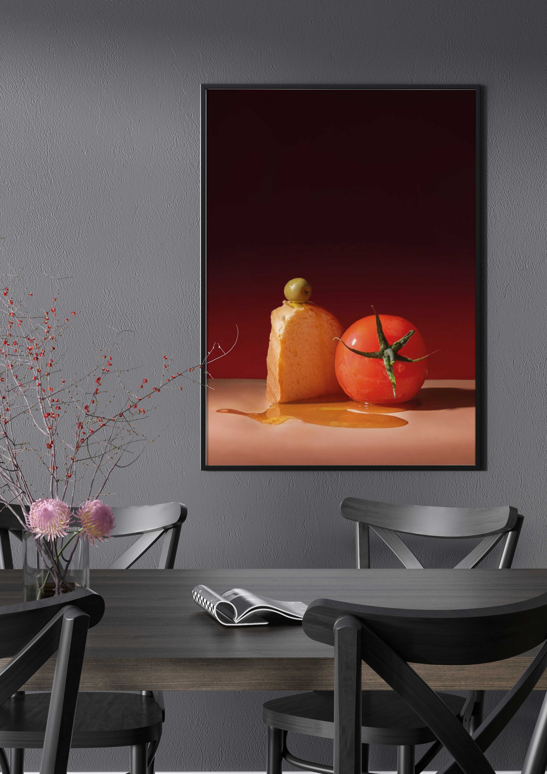 Imágenes artísticas de comida y bebidas que despiertan los sentidos. Perfectas para cocinas, comedores o espacios donde quieras añadir un toque creativo y moderno.