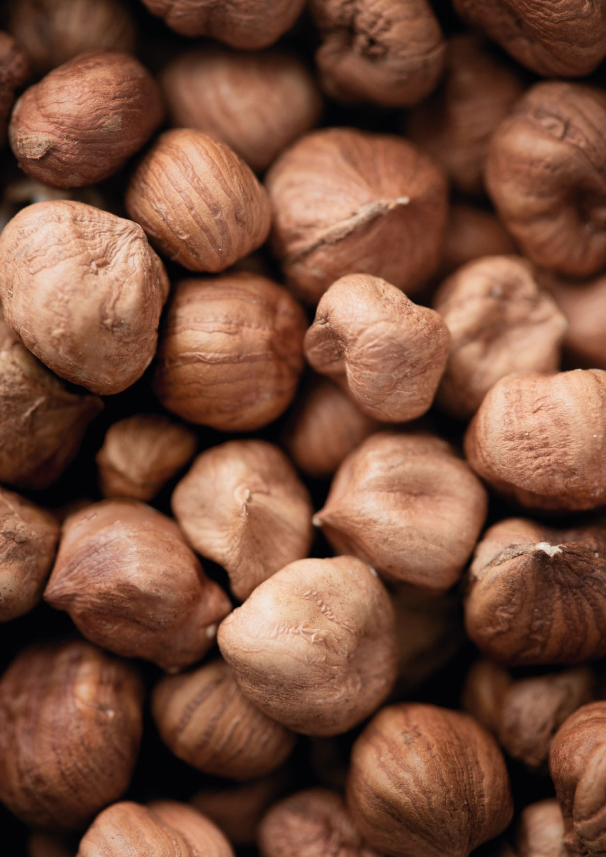 En un juego de formas orgánicas y tonos terrosos, las avellanas se presentan en primer plano, revelando la belleza de sus texturas naturales. Esta ilustración pone en valor lo esencial, lo auténtico y lo imperfecto.