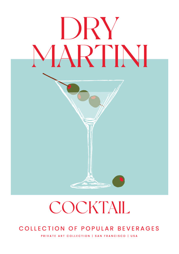 Con una composición limpia y equilibrada, el Dry Martini se presenta como símbolo de elegancia discreta y estilo atemporal. Esta ilustración captura la esencia del cóctel clásico a través de líneas sutiles y una paleta serena.
