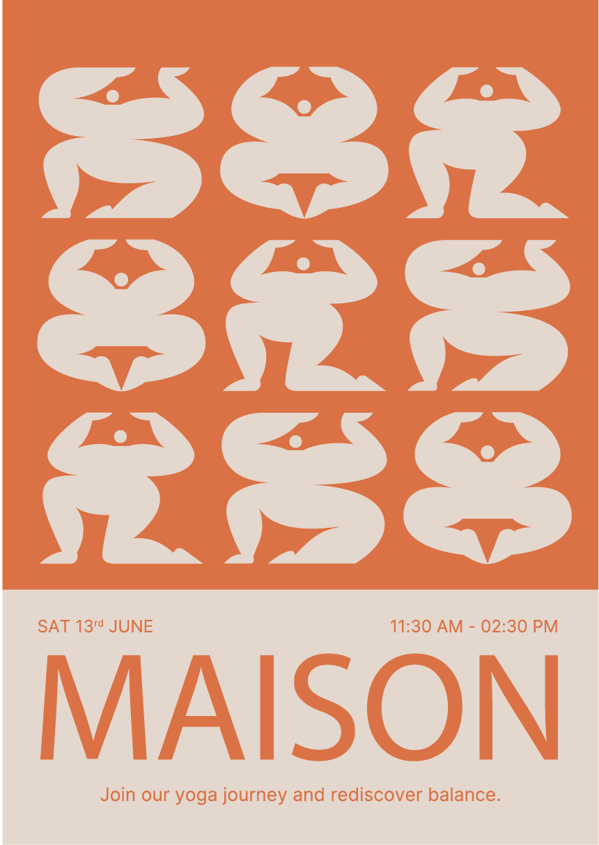 “Flujo Yogui” es una ilustración digital que representa una secuencia de figuras estilizadas en posturas de yoga, dispuestas en un patrón repetitivo que transmite ritmo, calma y conexión corporal. Las formas orgánicas en tonos suaves se integran sobre un fondo cálido, creando una composición moderna y equilibrada que refleja la esencia del movimiento y la búsqueda de bienestar. La obra combina sencillez gráfica con una presencia visual sólida, ideal para quienes encuentran inspiración en la práctica del yoga y en la armonía del cuerpo.