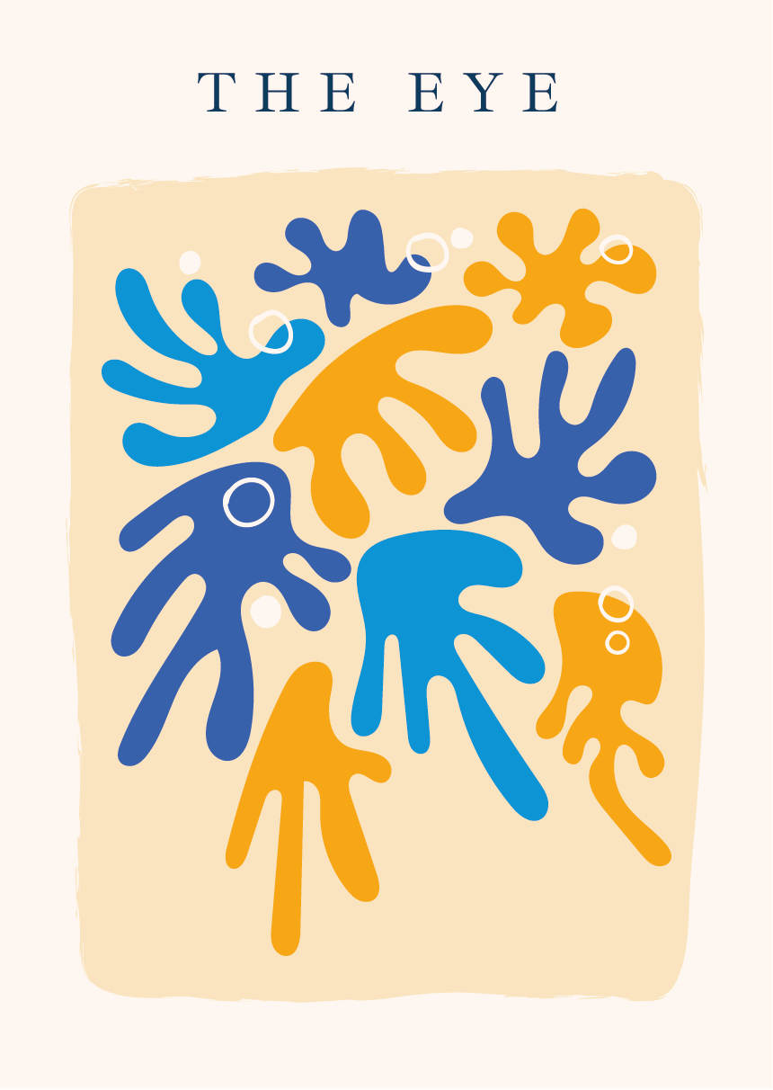 “The Eye” es una ilustración digital que combina formas orgánicas en tonos azules y amarillos para crear una composición dinámica, vibrante y visualmente envolvente. Las siluetas fluidas se superponen en un espacio suave y cálido, generando un ritmo natural que evoca movimiento, energía y una mirada abstracta hacia el interior. Los pequeños círculos blancos aportan equilibrio y ligereza, reforzando la sensación de un universo lleno de vida y armonía.